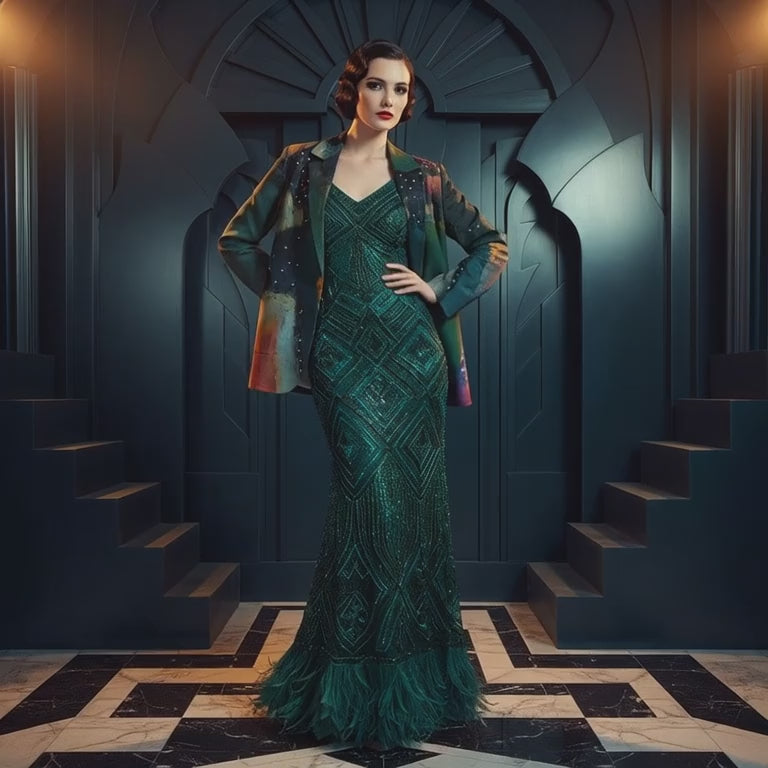 ADS-3WOCXZ03-MXQGT-FFFFFFWomen's Green Orange Red Patchwork Blazer - Abstract Art Statement Jacket
