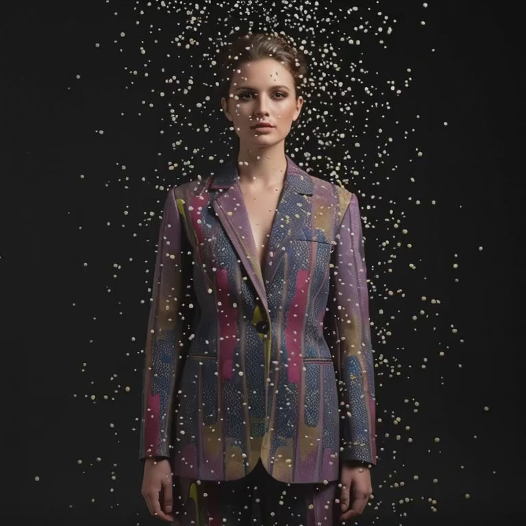 Women’s Purple Blue Art Print Blazer – Abstract Geometric Jacket