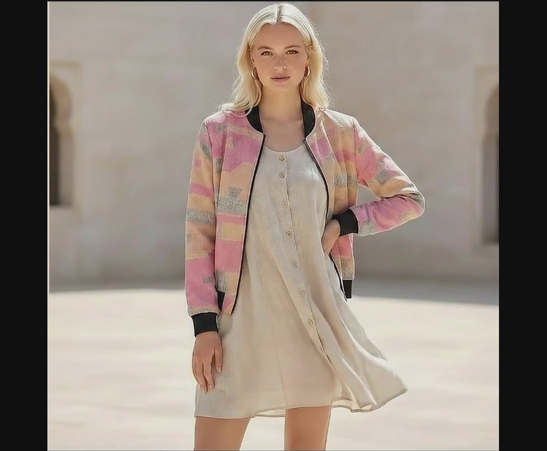228. Women's Blush Strata Abstract Bomber Jacket