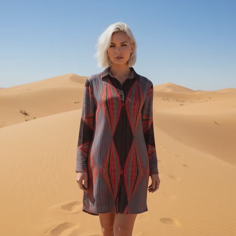 Women’s Black Diamond Shirt Dress – Custom-Designed Art Print N